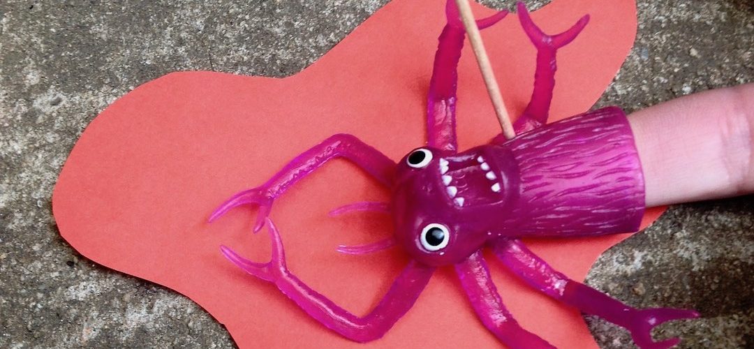 How gruesome, to be stabbed to death by a toothpick and left to die in a puddle of your own cardboard blood. But that’s what happened to this finger puppet. It’s a dangerous world.