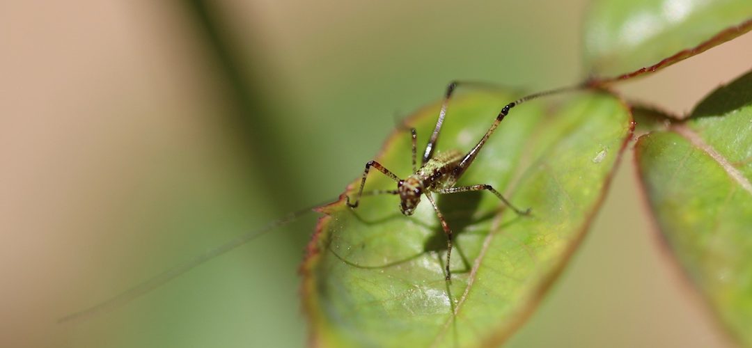 I got myself a new 100mm macro lens for my Canon and this is one of the first pictures I took. Thank you for posing, tiny grasshopper. It was sitting on this rosebush I have growing in a red birthday present…