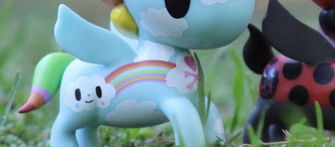 I got these Tokidoki unicorns in Los Angeles when we spent a week there riding around on our bikes and driving around in our convertible Mustang. Hanging out in our hotel with a sea view. I found the Tokidoki shop…
