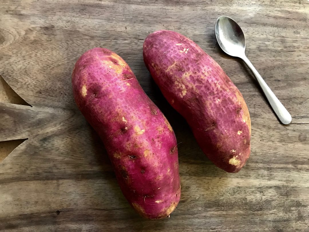 I made these sweet potato baked rosti things the other night as an accompaniment to spinach soup. I asked Boyfriend to think of a name for them.
