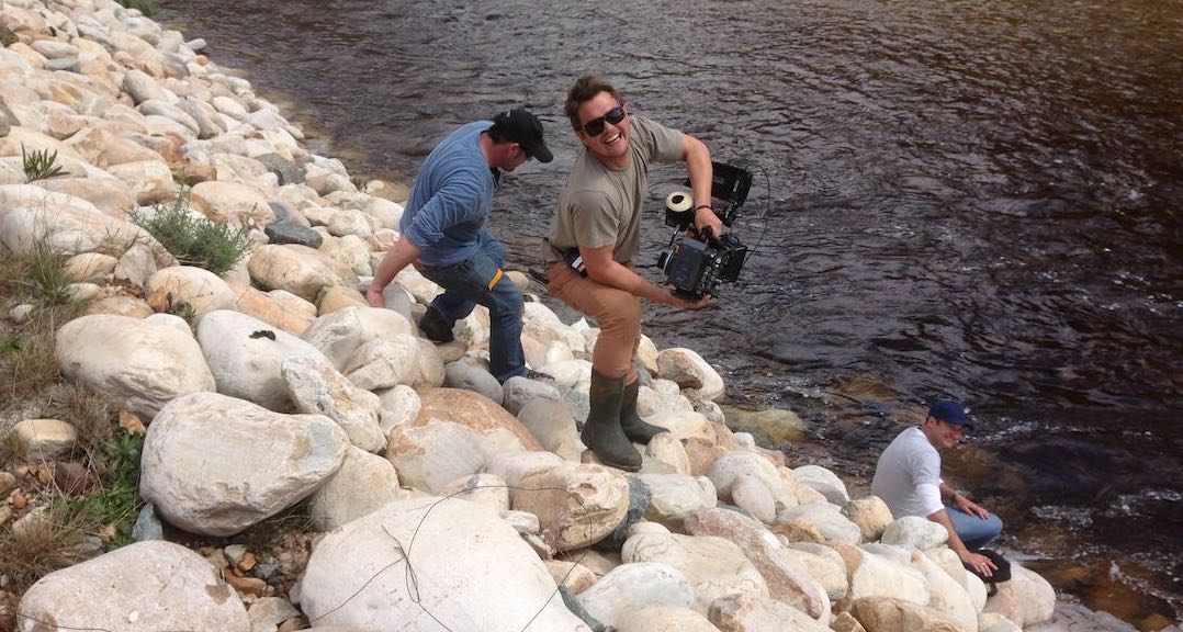 With a small crew even the AD has to help lug the Alexa up a riverbank.